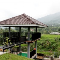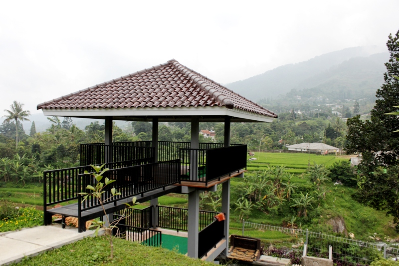 Bangunan dengan konsep modern minimalis ini menawarkan pemandangan perbukitan yang asri. Berada di ketinggian, Anda dapat menikmati pemandangan persawahan dan sungai Ciliwung yang mengalir deras di sela bebatuan besar. Sangat pas untuk liburan sambil melepas penat.