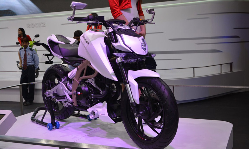 Sebelumnya, TVS sempat memamerkan sebuah konsep naked bike berlebel Drakken. Naked bike bertampang sporti dengan fitur futuristik itu juga pernah singgah ke Indonesia dan dipamerkan di helatan Jakarta Fair 2014 di Kemayoran, Jakarta Pusat.