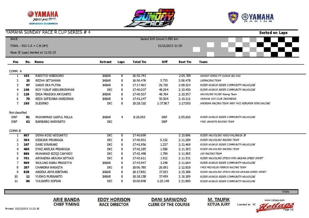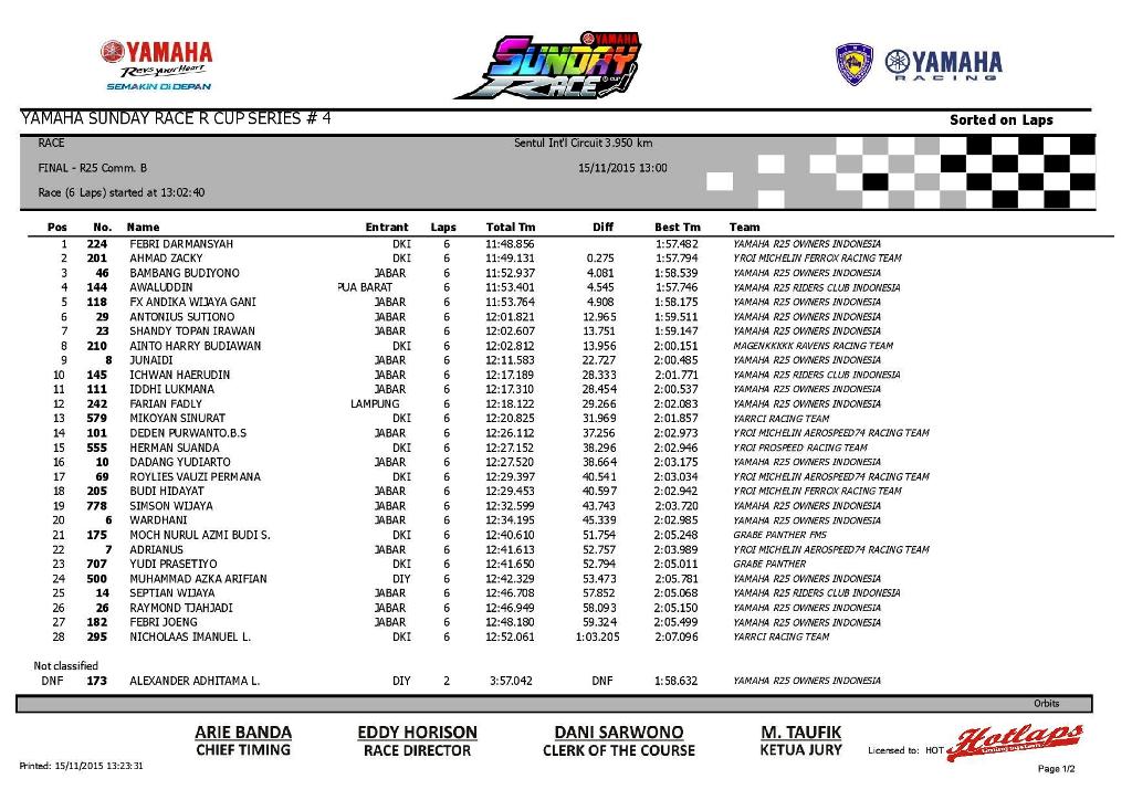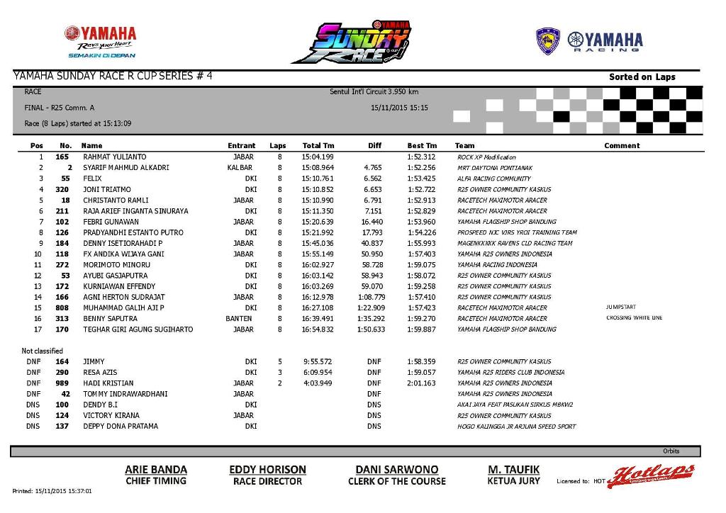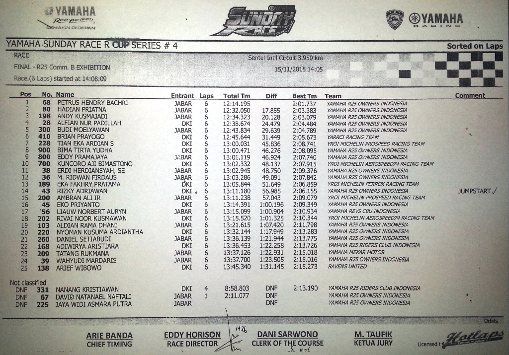 Hasil race Yamaha Sunday Race kelas komunitas :
