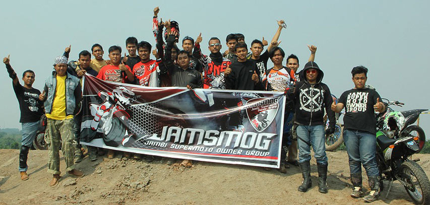 “Komunitas supermoto Jambi ini sering melakukan kegiatan bakti sosial dan touring. Terakhir kita touring ke Pekan Baru dan bertemu anggota Kracker Pekan Baru,” kata Abdee, promotor Jamsmog.