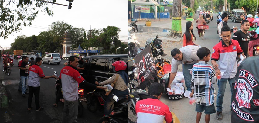 Di sini, pada anggota KOSTER membagikan 5.000 takjil kepada masyarakat di jalan umum untuk mereka berbuka puasa.