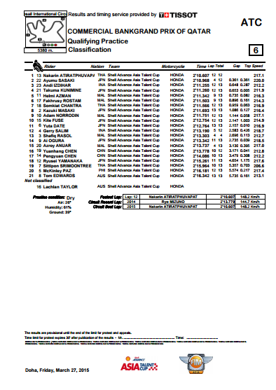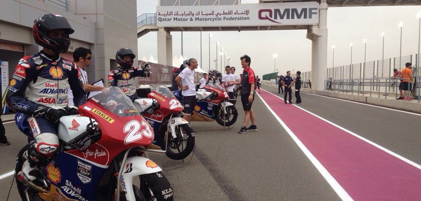 GILAMOTOR.com – Pebalap Indonesia, Andi Izdihar akan memulai balap Asia Talent Cup (ATC) seri kedua dari grid terdepan. Saat pelaksanaan kualifikasi di Sirkuit Losail, Qatar, Jum’at (27/3/2015), dirinya mampu masuk ke urutan tiga besar.