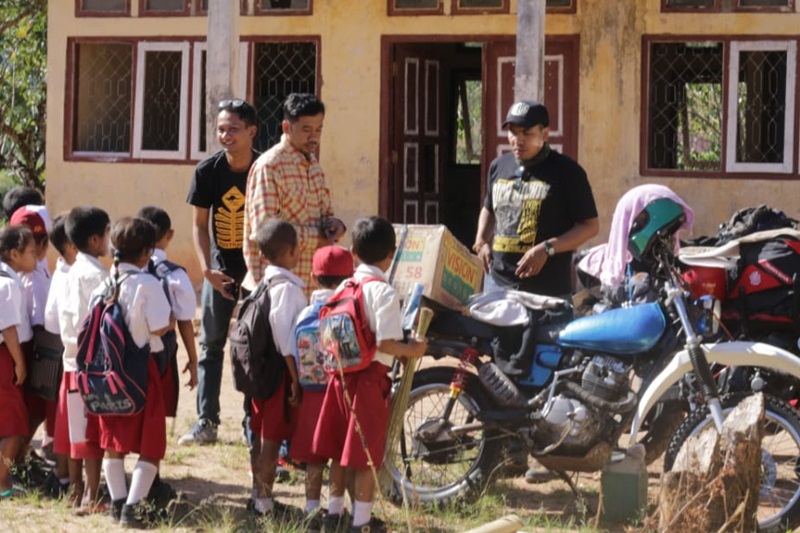 “Misi kita selain riding dengan motor custom adalah ingin berbagi dengan para masyarakat di pedalaman. Kali ini kita coba membawa logistik berupa pakaian seragam SD dan juga alat tulis,” ujar Aripianto salah satu penggagas Kustom Xperience.