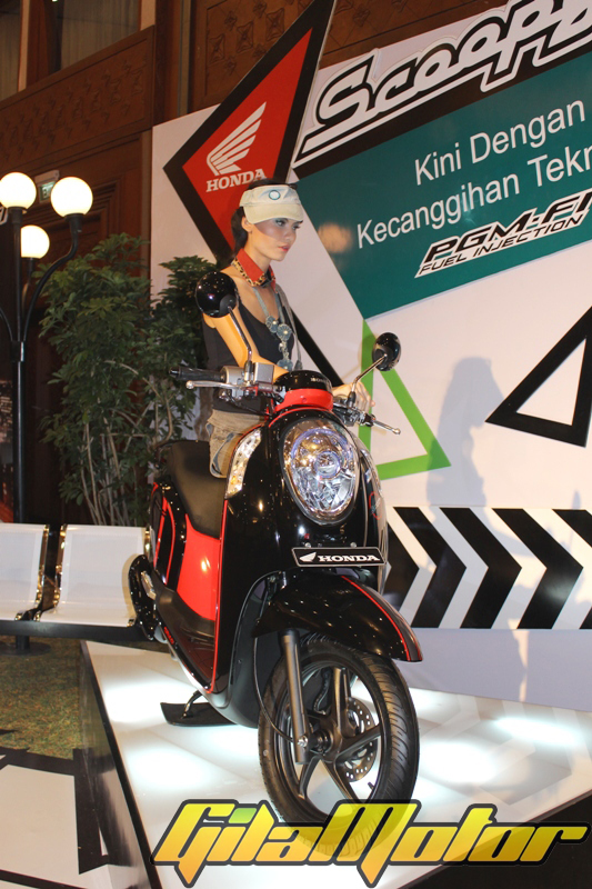 Buat menyesuaikan karakter baru Scoopy FI yang unik dan fashionable, busana rancangan Ichwan Thoha yang sering bikin trend gaya busana anak muda dengan rancangan bajunya yang selalu edgy, fun, flamboyan dan retro futuristic diperagakan oleh 20-an model cantik yang bikin mata nggak mau kedip. Kalau kata almarhum Bang Benyamin S, itu para model udah kaye orang-orangan toko. Cakep-cakep banget, bro..