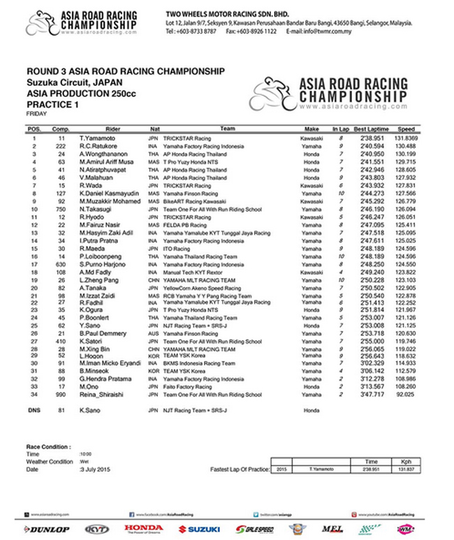 Latihan di kelas 250cc ini berlangsung dalam kondisi hujan. Makanya, banyak pebalap yang belum bisa memaksimalkan tunggangannya di lintasan.