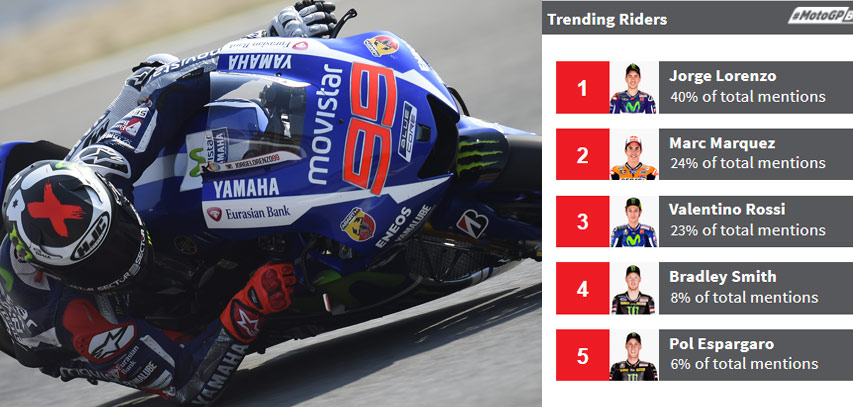 Agresifitas Rossi sebagai rider tertua di kelas utama membuat khalayak kagum. Hal ini pun membuatnya selalu jadi bahan pembicaraan di media sosial. Bahkan, banyak orang pula yang meyakininya bakal meraih gelar juara dunia ke 10.