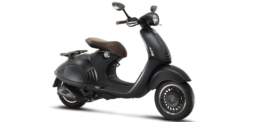 Emporio Armani merancang edisi spesial Vespa 946. Mempertahankan pilihan warna khas Armani, perancang menghadirkan kombinasi khusus warna abu-abu dengan sentuhan halus warna hijau, yang hanya dapat terlihat di bawah kondisi cahaya tertentu.