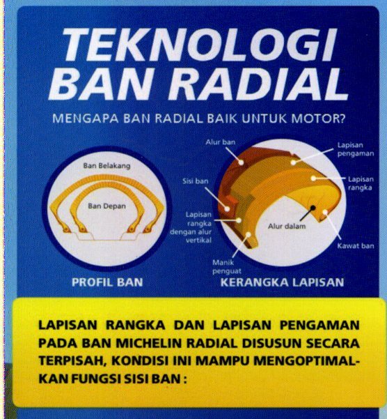 Kedua, tingkat fleksibilitas sisi ban mampu meningkatkan kenyamanan saat berkendara. Ketiga, lapisan pengaman yang melingkupi bagian dalam abn memberikan stabilitas yang lebih baik pada kecepatan tinggi, baik pada jalur lurus maupun berkelok. Terakhir, daya serap struktur ban radial pada permukaan jalan memastikan usia daya tahan ban yang semakin awet.