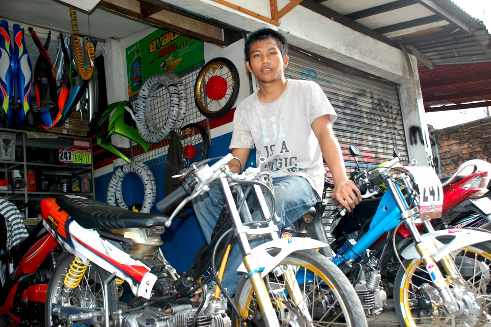 “Setelah lama jadi joki balap liar gw ngerasa kepengen tau gimana bikin motor bisa laru kenceng. Mau gak mau gw belajar dari ngeliatin mekanik motor yang gw jokiin. Lama-lama gw penasaran pengen bongkar sendiri, akhirnya Yamaha Force 1 gw yang jadi kelinci percoban buat balap liar sampe berkali-kali rusak terus jadi lagi. Bahkan bokap gw sampe kesel sama gw karena saat gw gak megang duit tapi pengen bongkar motor, gw nadang sama bokap,†jelasnya.
