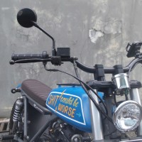 Setelah mesin beres, sang builder mulai pitching untuk part yang cocok dengan keinginan Wisnu. Salah satunya yaitu pemasangan bracket untuk tank bag dan side bag. Termasuk juga pemasangan ban multi purpose dari Swallow serta swing arm yang dibikin lebih panjang 3cm dari bawaannya.