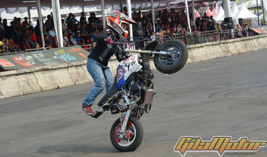GILAMOTOR.com – Motor mungil Kawasaki KSR mungkin bagi sebagian orang hanya menjadi tunggangan hobi, maupun harian. Namun bagi Yupadee Vongtaveesub, stunt rider asal Thailand, sosok KSR justru jadi motor untuk beraksi.