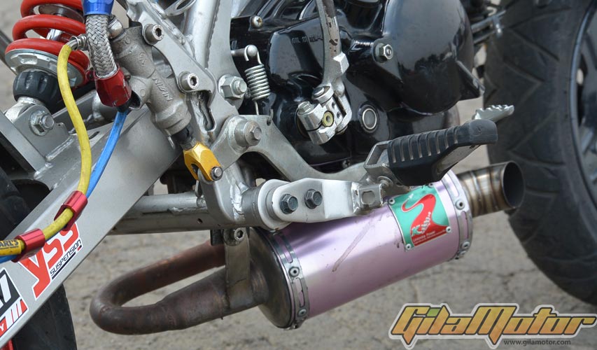 Lebih jauh, motor ini juga masih mengandalkan mesin 110cc standar KSR dengan kopling semi otomatis seperti motor bebek umumnya. Hanya saja, knalpotnya sudah mengusung model custom yang unik.