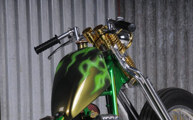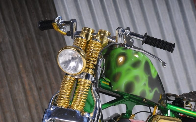 Untuk memunculkan kesan mewah, Rizky memberikan sentuhan krom warna gold dibeberapa bagian. Terutama dibagian per springer, agar senada per sadel juga dikrom warna gold. Begitu pula beberapa bagian komponen lain seperti jeruji, footstep dan dudukan cakram belakang.