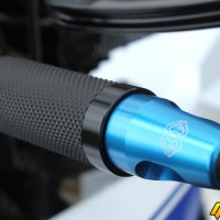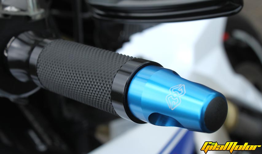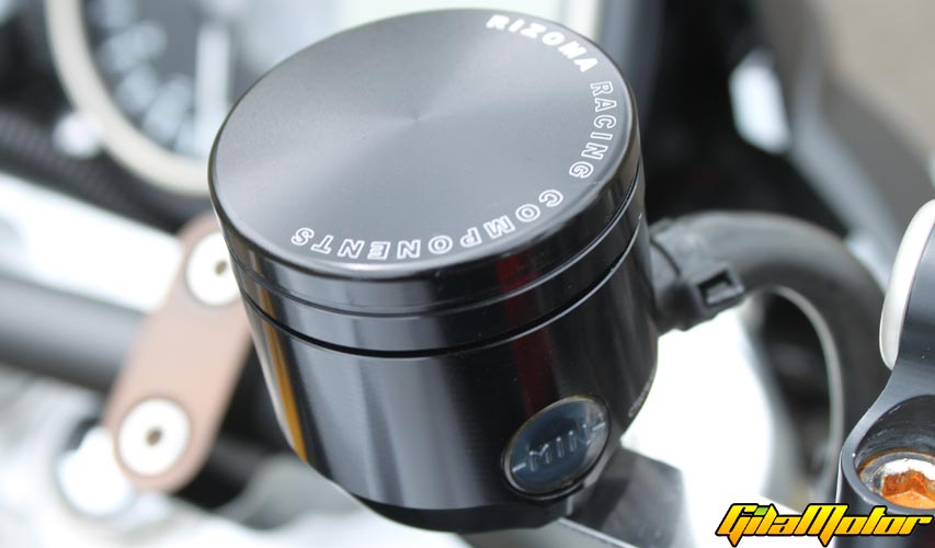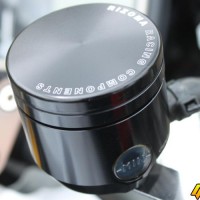 Diantaranya aplikasi beberapa parts Rizoma seperti handle rem dan grip. Serta penggunaan knalpot full system custom untuk menambah nuansa sangar pada motor berkelir biru-putih ini.