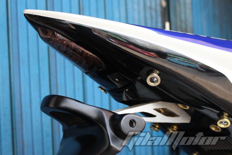 Memang sekilas motor yang menjadi rival Kawasaki Ninja 250 Fi ini tampak mirip dengan tunggangan Valentino Rossi di ajang MotoGP. Bodi kit berbahan fiberglass dilabur dengan warna biru putih dengan beberapa logo sponsor di bagian bodi.