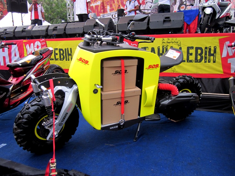Yayank merombak habis sasis motor Mio miliknya dengan hanya menyisakan mesin nya saja. Di bagian tengah, motor diubah dengan membentuk bok tempat penyimpanan barang.