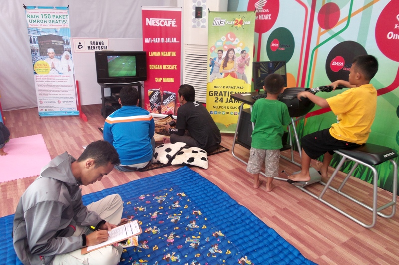 Kalau bro en sis mudik, sampean bisa mampir di sini. Sambil melepas lelah, sampean bisa menikmati fasilitas yang disediakan Honda. Fasilitasnya benar-benar memanjakan pemudik yang mampir ke BSH, ada fasilitas pijat, cukur, Honda riding trainer, serta games buat anak-anak.