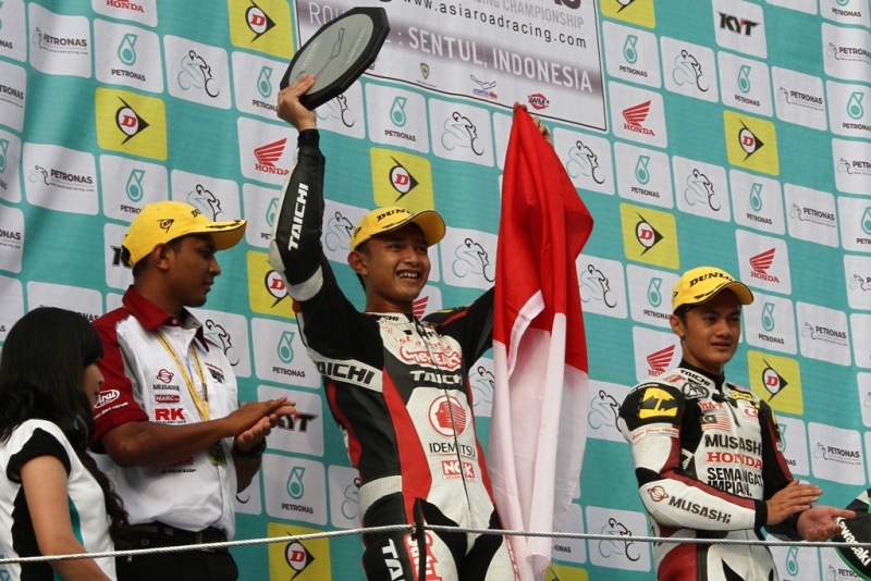 GILAMOTOR.com – Pebalap binaan PT Astra Hobda Motor (AHM) semakin berprestasi pada ajang balap internasional. Kali ini dibuktikan dengan diraihnya 4 podium pada Asia Road Racing Championship (ARRC) seri kedua di sirkuit Sentul, Jawa Barat (15/6).