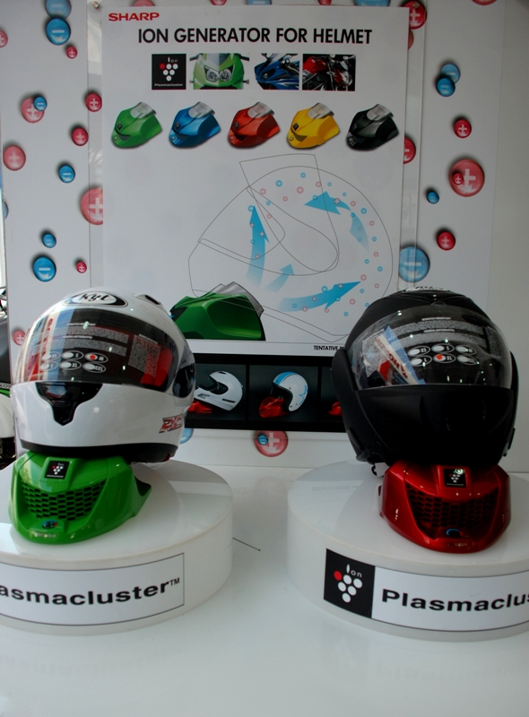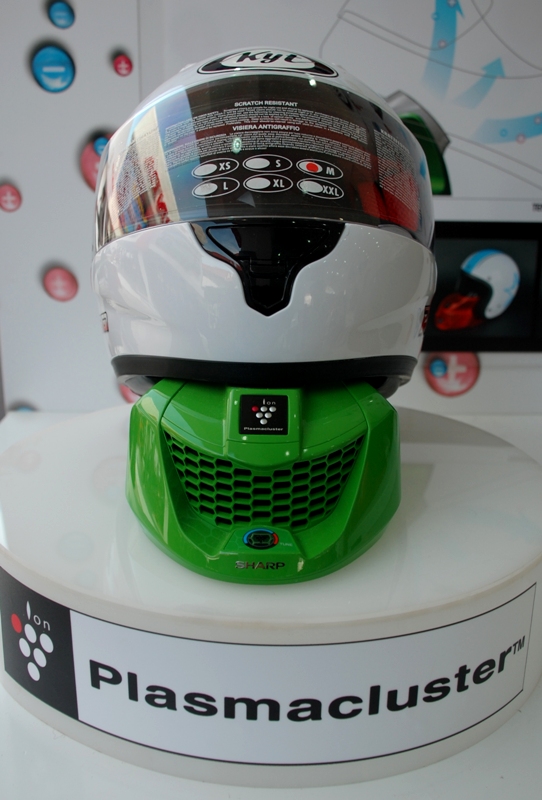 Adalah Ion Generator For Helmet, nama sementara yang disandang oleh konsep pembersih helm dari Sharp ini. Alat ini bekerja mengeluarkan hawa panas dan menyemburkan ratusan ribu Ion kedalam helm untuk menetralisir kuman dan kotoran penyebab bau dan gatal.