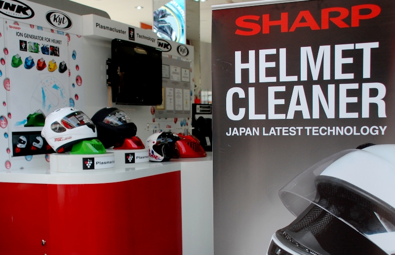 Melalui PT. Sharp Electronics Indonesia, perusahaan elektronik ini menghadirkan konsep pembersih helm portable yang mudah digunakan dan mampu bekerja dengan sempurna di arena pameran Pekan Raya Jakarta.