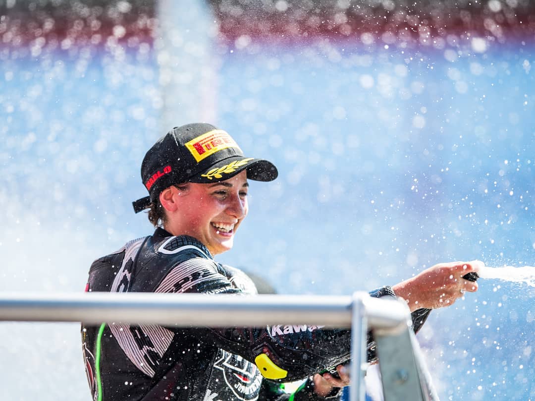 GilaMotor.com – Balapan bukan hanya milik kaum pria. Hal ini dibuktikkan oleh prestasi yang diraih Ana Carrasco dalam balapan WorldSSP300 di Imola, Italia akhir pekan lalu. Rider jelita asal Spanyol tersebut berhasil mengantungi gelar juara. Mengulangi raihan serupa pada 2017 saat ia mengukuhkan diri sebagai perempuan pertama yang menjuarai World Championship.
