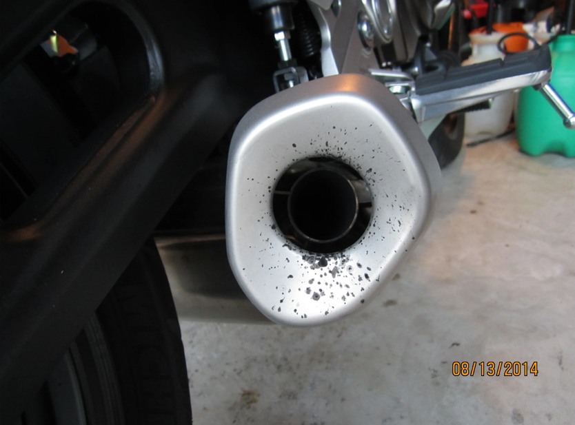 Pemilik sepeda motor bisa saja mendapati oli mesin keluar melalui knalpotnya. Biasanya, hal ini akan diketahui dengan cara mencolek ujung knalpot.