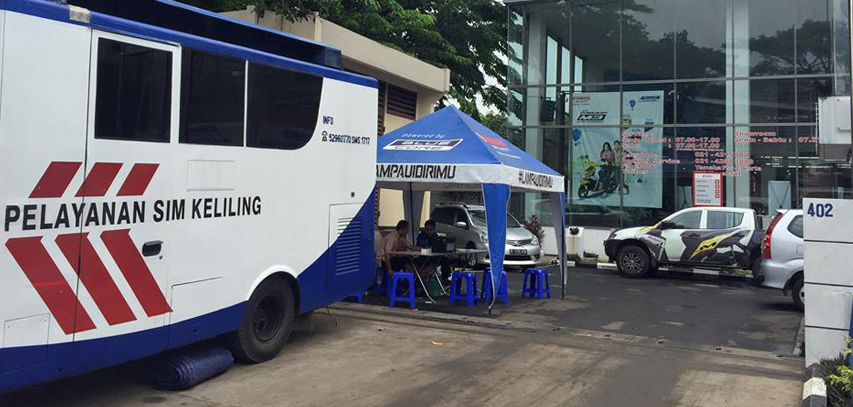 Main dealer Yamaha ini menyediakan tempat untuk parkir mobil SIM Keliling. Program ini akan berlangsung secara rutin, sebulan sekali. Jadwalnya adalah setiap Sabtu di akhir bulan. Anda bisa datang mulai pukul 08.00 WIB sampai 17.00 WIB.