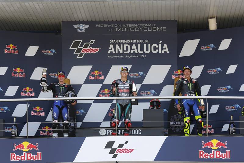 Gilamotor.com – Pembalap Yamaha yakni Fabio Quartararo, Maverick Vinales dan Valentino Rossi kuasai seri kedua MotoGP Andalusia di Circuito de Jerez – Angel Nieto, Spanyol, pada hari Minggu (26/7).