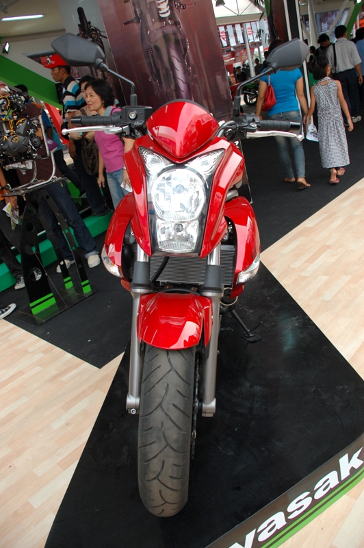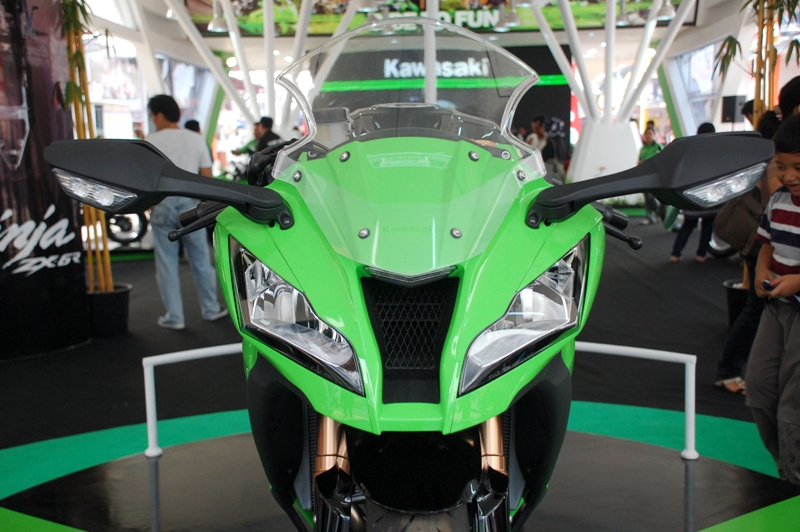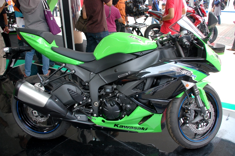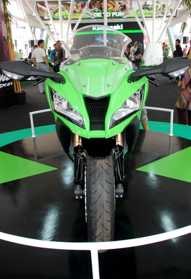 Di barisan depan booth, Kawasaki memajang motor sport andalannya seperti Ninja ZX-10R yang baru diluncurkan pada awal tahun 2011 lalu di Inggris, Ninja ZX-6R, Ninja 400R dan Ninja ER-4n. Melangkah lebih dalam, barisan motor-motor petualang seperti D-Tracker, KLX dan KSR hadir dengan beragam pilihan warna.