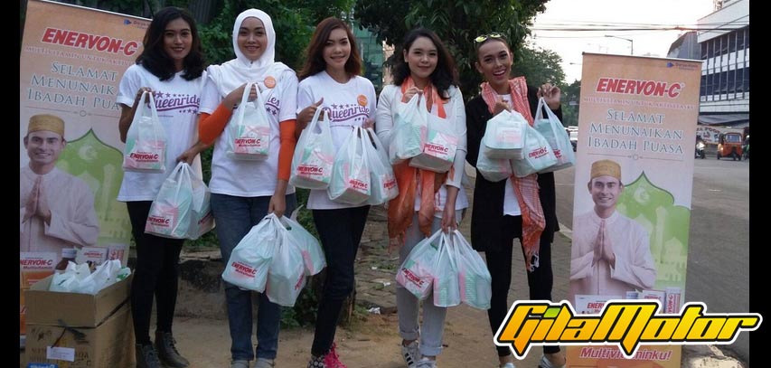 Program tersebut sudah memasuki hari ke 7, dan kali ini mengambil lokasi di Panglima Polim, Jaksel Sabtu (11/7/15). Lima Riders Cantik berbusana muslim kembali membagikan takjil dan bingkisan dari Enervon-C menjelang waktu berbuka.