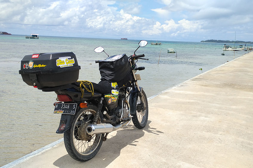 Hujan yg di tunggu tak kunjung reda terpaksa kami menggunakan jas hujan untuk melanjutkan mengeksplore pulau kemujan, track offroad membuat semangat kami di pacu kembali menuju ujung dari pulau kemujan bertemu jalur tracking yg sudah lama tak terlewati, kami mencoba masuk dengan menggunakan motor cukup horor matahari jarang masuk daerah tersebut hewan buas sepertinya juga ada di daerah itu. Kami putuskan untuk putar balik karena Jalan semakin rimbun dan jalur tanah menjadi akar-akar yg licin. Offroad lagi menyusuri pesisir barat pulau kemujan sangat seru karena lumpur disini bukan tipe lumpur yang lengket jadi tidak perlu extra tenaga untuk menahan motor di Lumpur yg lengket.