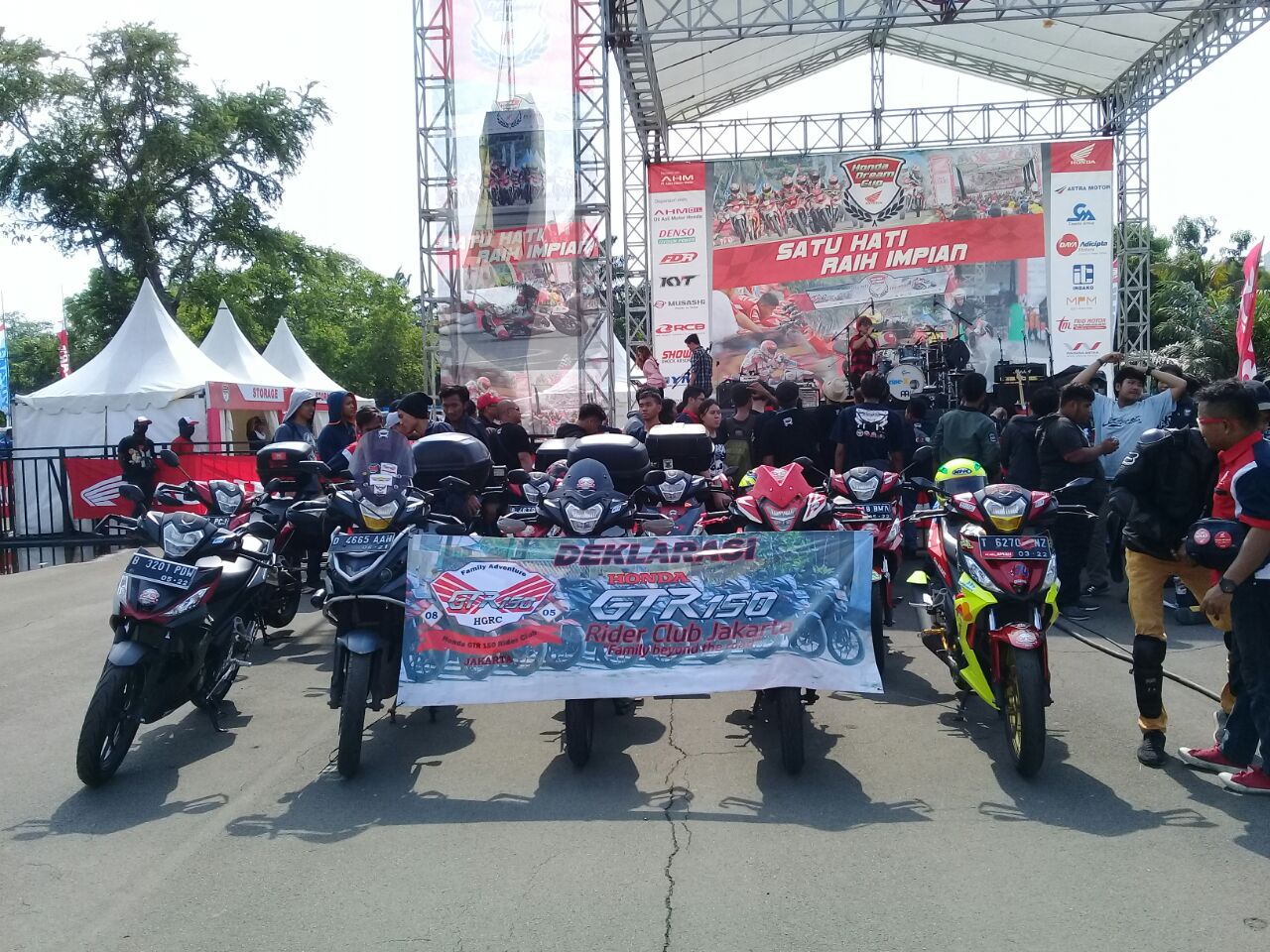 GilaMotor.com – Memanfaatkan momentum ajang Honda Dream Cup (HDC) 2017 seri ketiga yang berlangsung di Kemayoran, Jakarta (29/10). Sekumpulan bikers yang mengatasnamakan Honda GTR150 Rider Club (HGRC) Jakarta secara resmi mendeklarasikan diri nih Gilmoters.