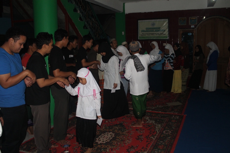 Penyerahan santunan secara simbolis diberikan oleh Agus selaku PIC Sahur On The Road tahun ini kepada Pimpinan Panti Asuhan AL-MAHMUDAH, Bpk. H. Sarmili. Usai memberikan penyerahan santunan secara simbolis, Team Sruntulan dan anak-anak Panti Asuhan AL-MAHMUDAH makan sahur bersama.