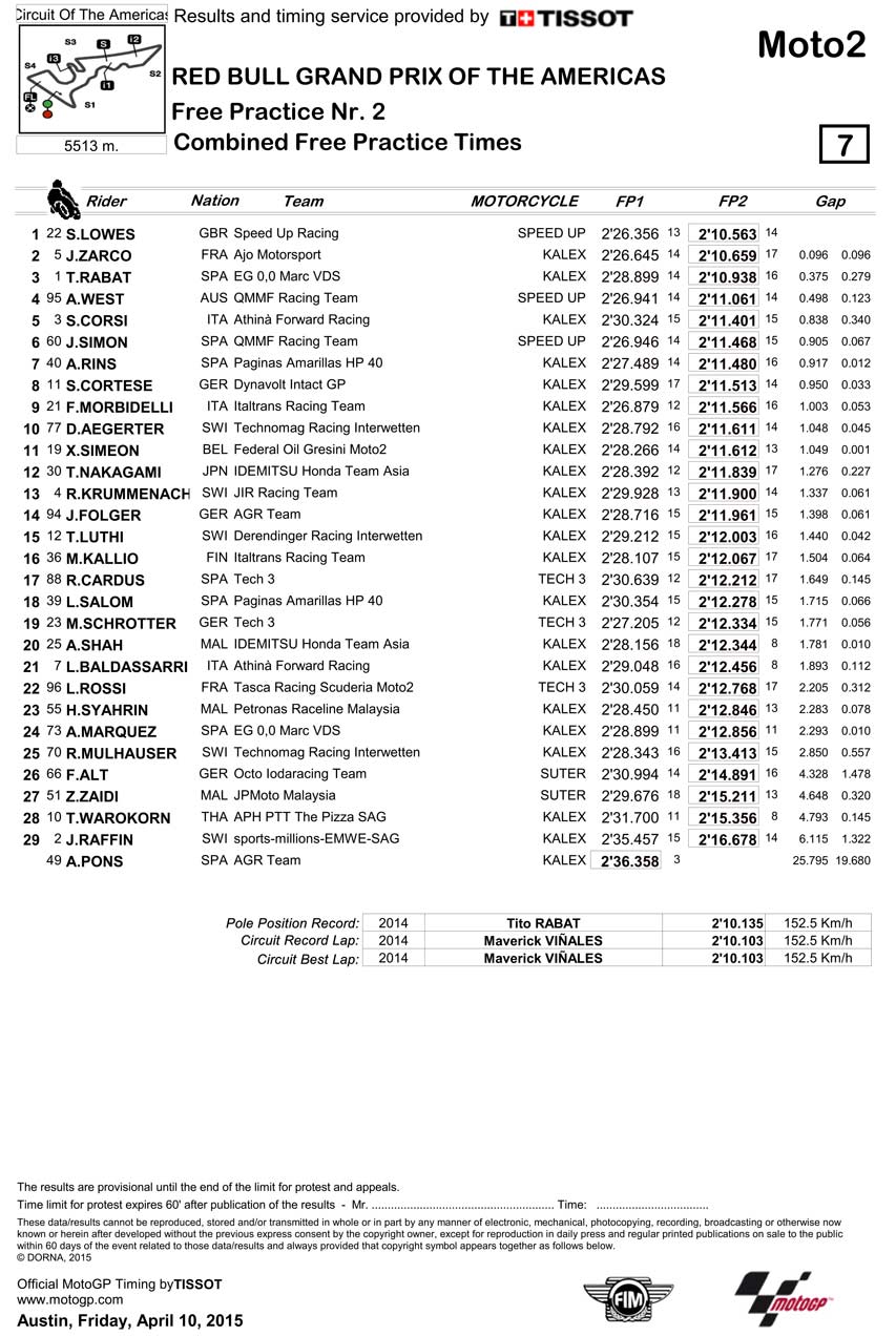 Hasil kombinasi Fp1 dan Fp2 Moto2 Austin :