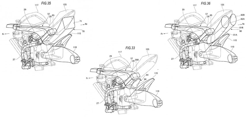 Dalam desain paten ini juga, Suzuki mengenalkan tiga tipe pendinginan untuk piranti intercooler mereka. Yang pertama adalah pendinginan dengan model ducting panjang yang akan membawa udara dingin ke arah intercooler dan kemudian membuang udara panas jauh di buntut belakang motor. Sedangkan sebagai variasi desain lainnya, tersedia dua ducting membulat untuk membuang udara panas.