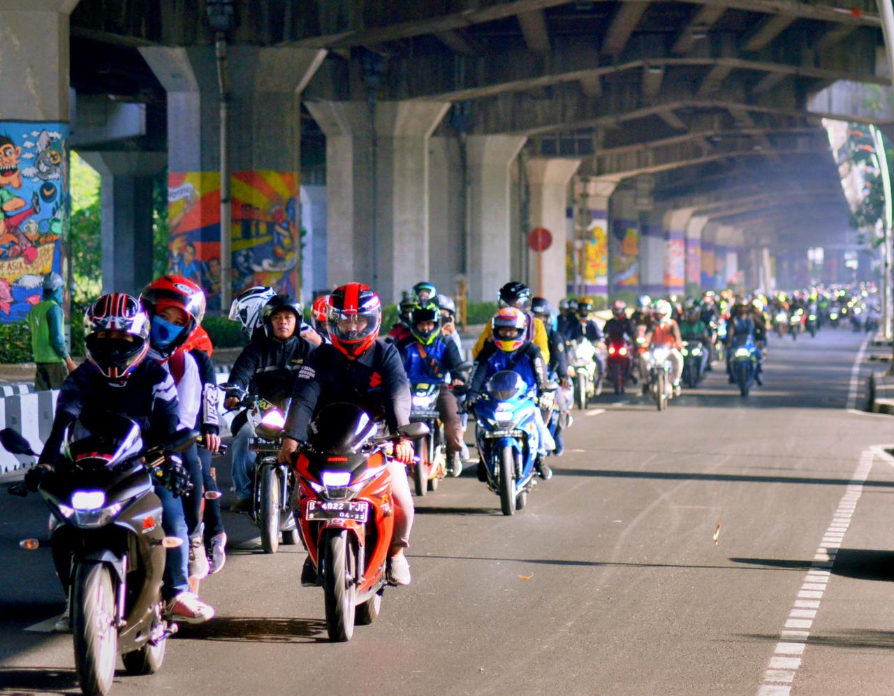 Saking kagennya untuk berkumpul, ribuan pengguna motor Suzuki padati kegiatan Sunmori (6/10) Gilmoters. Kehadiran peserta tidak hanya dari Jakarta, namun ternyata juga ada dari wilayah Banten, Depok dan Bekasi.