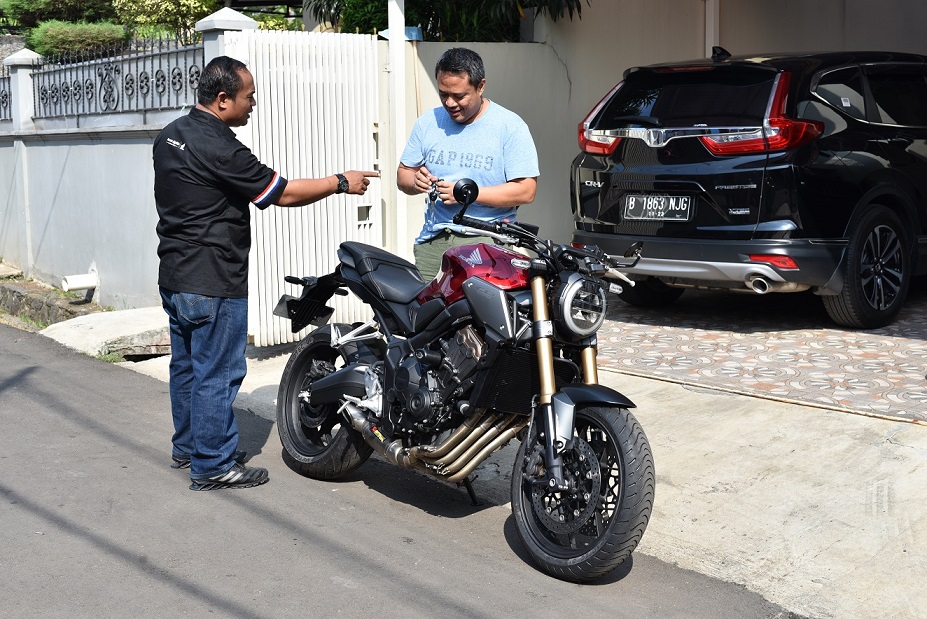 “Spesial, bapak Indra bukan hanya kali ini membeli produk Honda BigBike di Wahana, makanya jadi kehormatan untuk kirimkan unit ini di masa libur lebaran,” jelas Barry, Honda BigBike Consultant Wahana. Dijelaskan lebih lanjut, selain naked Honda BigBike ini, Indra sebelumnya juga memiliki Honda CB500X, CB650F, dan CBR250RR.