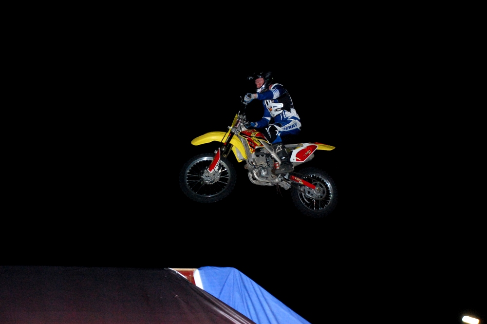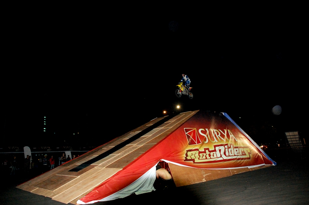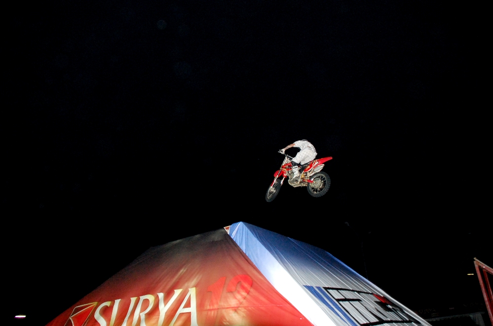 Namun demikian, pengunjung masih dapat menikmati aksi para freestyler tersebut menerbangkan motornya memecah kegelapan malam langit Kemayoran.