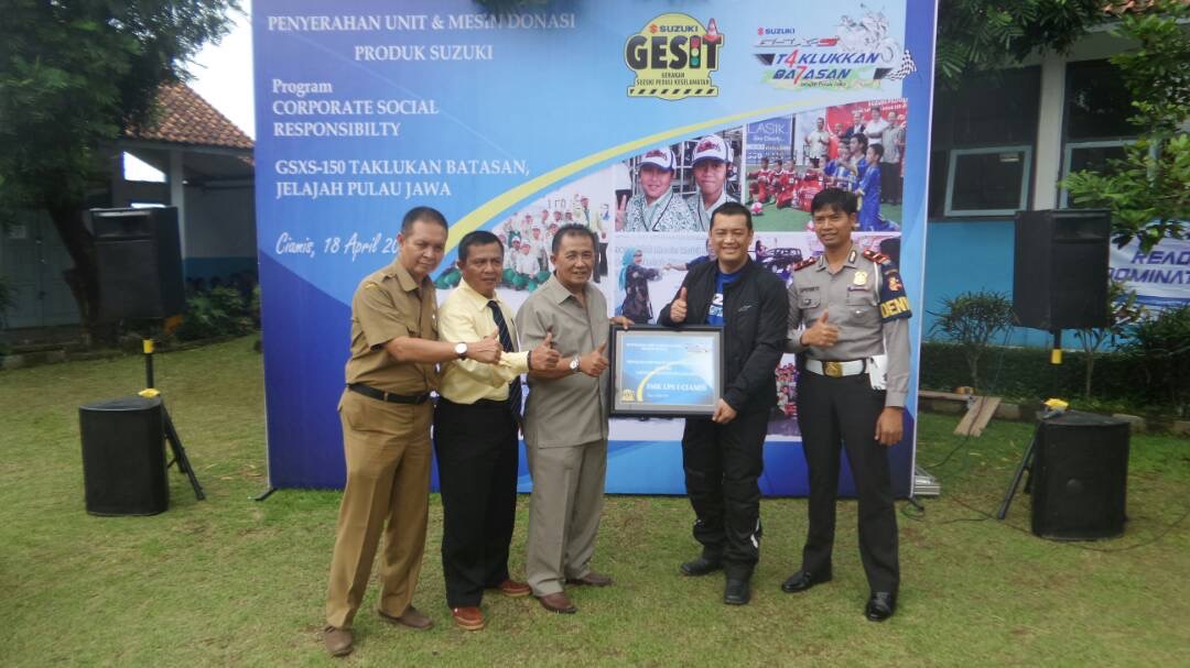 GILAMOTOR.com – Untuk mendukung pembelajaran dan meningkatkan ilmu pengetahuan para siswa khusunya di bidang otomotif, PT Suzuki Indomobil Sales (SIS) memberikan bantuan 1 unit Suzuki Skywave dan 1 unit mesin Inazuma 250 untuk Sekolah Menegah Kejuruan (SMK) LPS 1 Ciamis. Penyerahan bantuan ini juga bersamaan dengan kegiatan touring GSX-S150 yang digelar PT SIS.