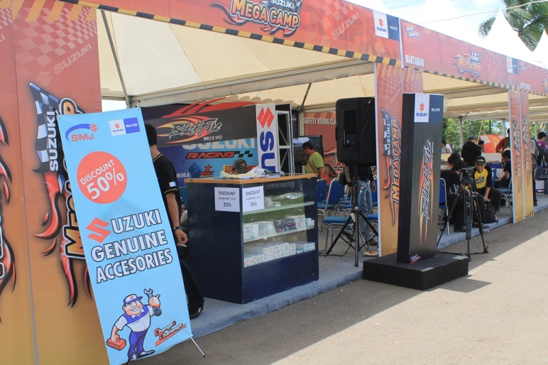 Nggak cuma itu aja bro en sis, di Suzuki Mega Camp para pengunjung juga berkesempatan menjajal berbagai jenis motor Suzuki yang telah disediakan oleh penyelenggara. Yang lebih serunya nih, ada potongan harga sampai Rp 3 juta untuk setiap pembelian motor matik Suzuki. ”Suzuki Mega Camp kita buat untuk memanjakan para konsumen, selain kita memberika hiburan, kita juga memberikan diskon sparepart sampai 30%, service gratis, dan test ride motor Suzuki,” jelas Yohan Yahya Dept Head Marketing R2 PT Suzuki Indomobil Sales.