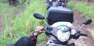 lumpur yang menempel di motor di bersihkan agar motor bisa jalan...