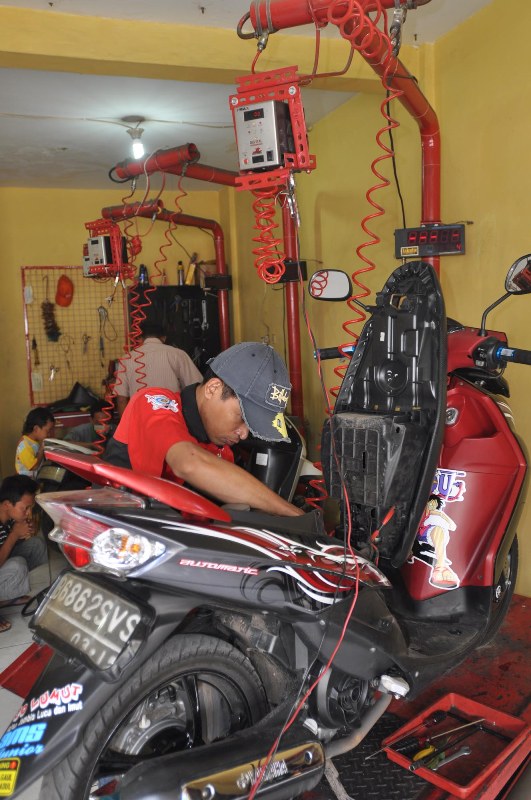 Semua merk dan jenis motor matik siap ditangani oleh Eko yang dibantu dengan 4 orang karyawannya. “Termasuk matik seperti Kymco kita terima,â€kata Eko.