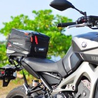 Bukan tampa solusi. Jika bikers harus membawa barang bawaan lebih banyak dan dimensi tankbag harus dikembangkan, penempatannya bisa dipindahkan ke bagian belakang atau seatbag. Jika difungsikan sebagai seatbag, magnet perekat tak lagi digunakan. Untuk menguatkan posisinya di jok belakang, 7Gear telah menyiapkan strap atau talinya.