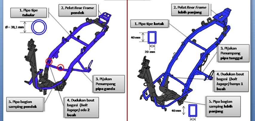 “Desain baru juga ada di link engine hanger. Model baru didesain lebih sederhana dan minim lekuk tambahan. Ini yang jadi rahasia penambahan tinggi ground clearance,” urai pria berkacamata itu.