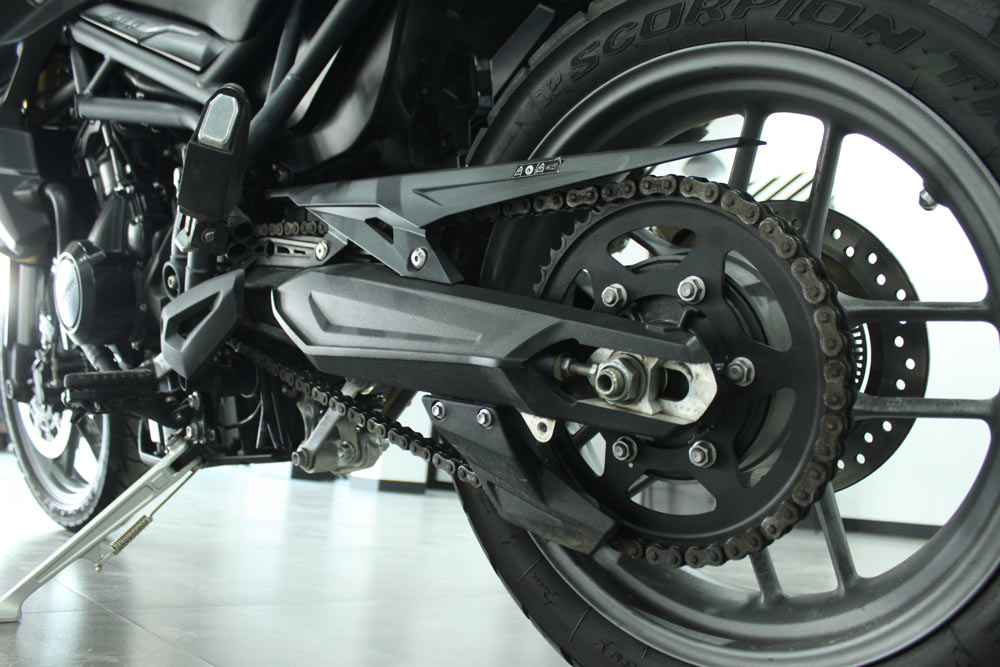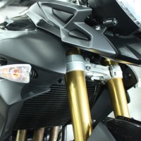 Kedua roda itu dikawal suspensi depan (Showa 43mm upside down forks, 180mm travel) dengan rem cakram ganda berdiameter 308mm dengan Nissin 2 piston sliding caliper. Sementara di bagian belakangnya terdapat rem cakram 255mm, Nissin single piston sliding caliper yang dijepit swing arm berbahan aluminium. Bagi bro en sis yang minat, bisa test ride kok. Sambangi saja markas GMT di Jl Pejaten Barat No 6, Jakarta Selatan.