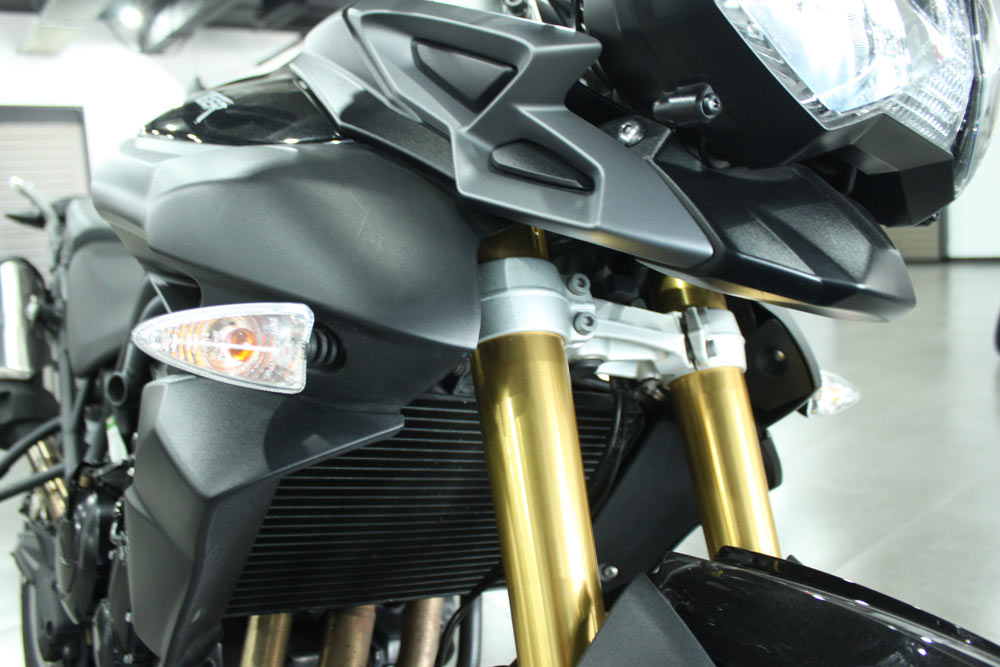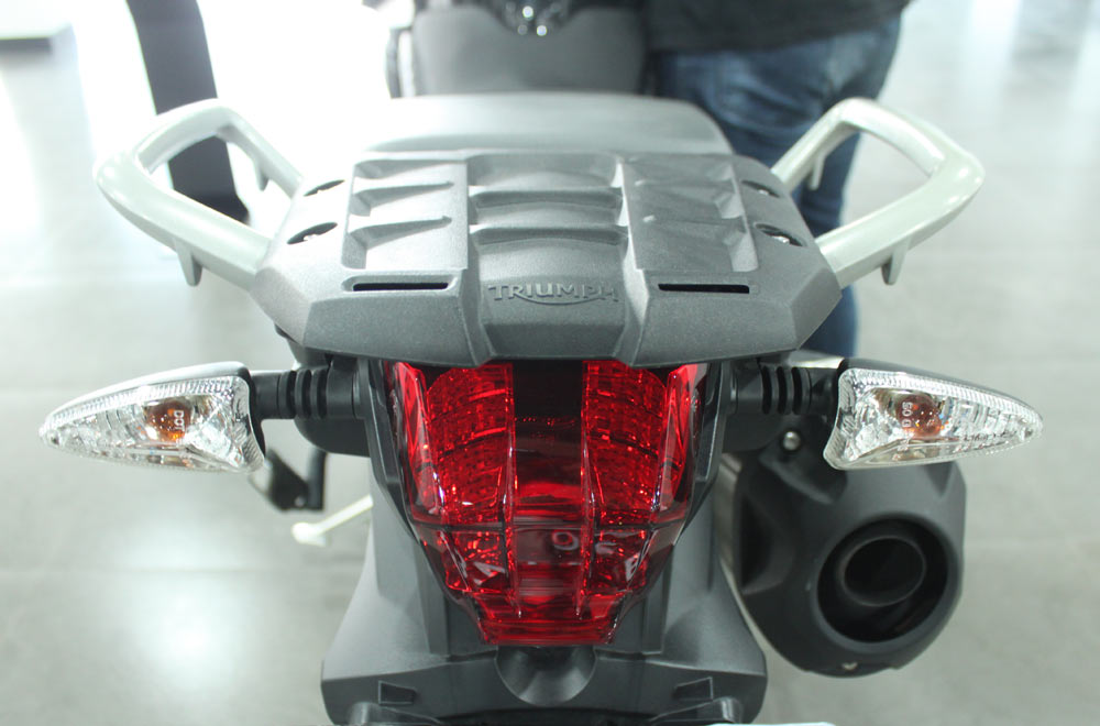 Dan, ketika kunci kontak diputar ke posisi ON, layar instrumen LCD yang disajikan Triumph Tiger 800 ABS sangat mendukung kebutuhan sang bikers. Informasi yang disajikan meliputi digital speedometer, trip computer, analogue tachometer, gear position indicator, fuel guage, TPMS ready, service indicator, switchable ABS serta jam.