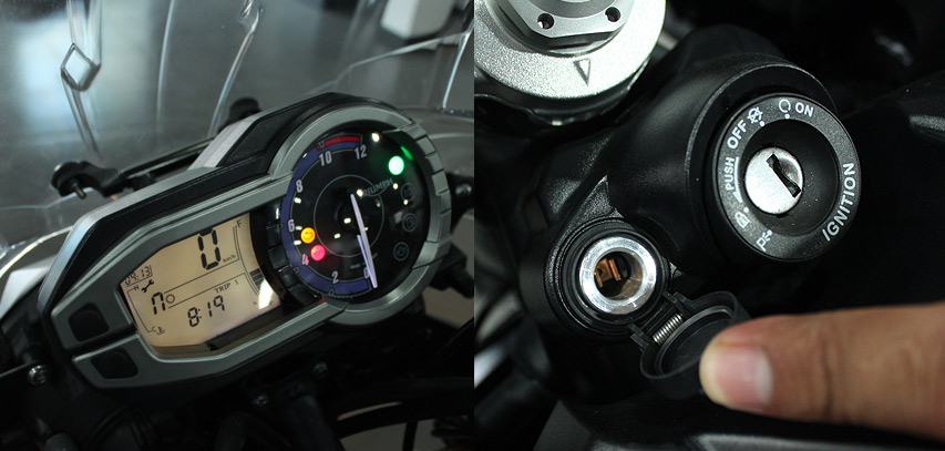 Menariknya, disana terdapat fitur P (parking). Jika diaktifkan, maka lampu belakang akan menyala. Disebelah kunci kontak juga terdapat soket yang berfungsi sebagai sumber tanaga GPS atau gadget bro en sis.