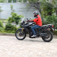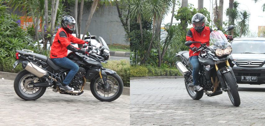 Struktur tubuh yang kekar mulai dari desain headlamp ganda yang dihiasi windshield, desain tangki yang lebar serta frame tubular teralis berbahan baja dan knalpot besar terkesan merepotkan saat diajak riding dengan kondisi itu. Apalagi, Tiger 800 ABS punya panjang tubuh mencapai 2215mm.