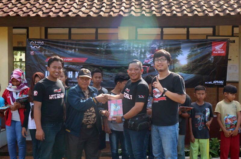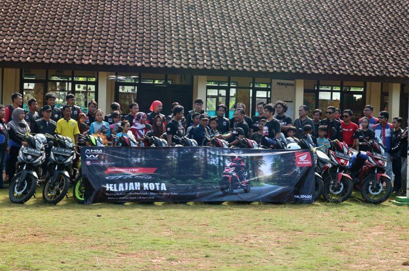 Kegiatan berfaedah ini tentunya mendapat dukungan dari PT Wahana Makmur Sejati (WMS) selaku main dealer sepeda motor Honda di Jakarta dan Tangerang. “Jelajah Kota sengaja dipilih bersamaan dengan peringatan hari buku nasional. Jadi sambil turing kami sempatkan berikan bantuan berupa buku tulis untuk anak – anak SD daerah Cibatu,” papar Community Development PT WMS, Agus Sigit.
