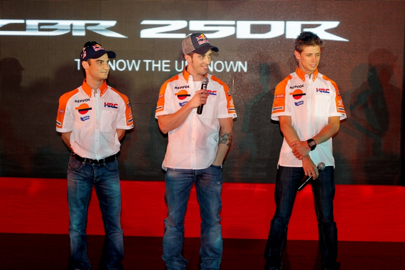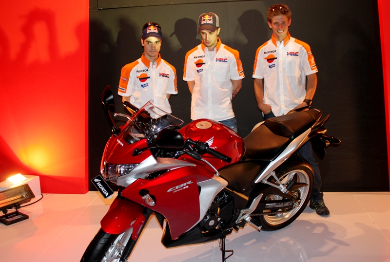 Kehadiran Dani Pedrosa, Casey Stoner dan Andrea Dovozioso memberikan nuansa istimewa prosesi peluncuran Honda CBR 250R. Trio rider Honda ini juga yang membuka selubung hitam penutup motor sport yang hari ini sercara resmi diluncurakn PT Astra Honda Motor (AHM).